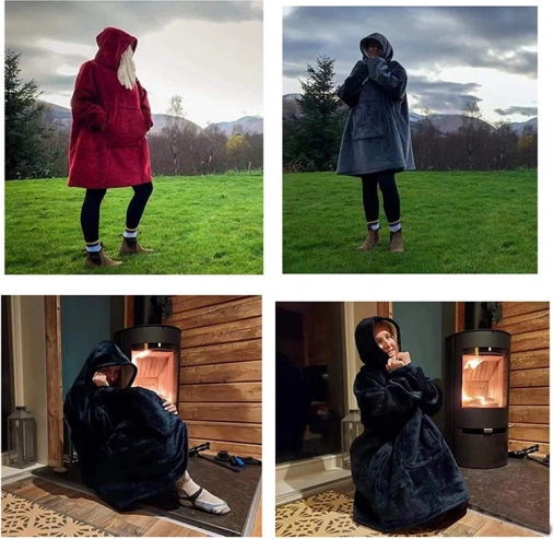 Uživajte u maksimalnoj udobnosti s ovom t toplom oversize deka-hoodie. Idealna za hladne večeri kod kuće, ova deka-hoodie pruža toplinu i slobodu kretanja zahvaljujući prostranim rukavima.