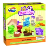 3 posudice plastelina, 3 kalupa za životinje, zdjelica, 2 kalupa za hranu za životinje, češljić, sušilo i škare