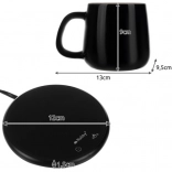 SPECIFIKACIJE- boja: crna + bijela; materijal šalice, poklopca i žličice: keramika; materijal postolja: kaljeno staklo + aluminijska legura; vodootpornost: da; timer: da; 2 programa grijanja: 1: 40 °C i 2: 60 °C; nazivna frekvencija: 50-60 Hz; volumen šalice: 400 ml; dimenzije grijača: 12 x 1,5 cm; dimenzije šalice: 13 x 9,5 x 9 cm; duljina kabela: 130 cm; priključna snaga: 18 W; napon: 220 V; težina: 627 g; težina s pakiranjem: 865 g.