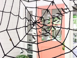 Velika crna paučina odmah će pretvoriti verandu ili ulazna vrata u jezivu scenu. Idealna za doček maskiranih posjetitelja i ukrašavanje doma.