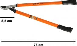Zahvaljujući ergonomskim gumenim rukohvatima alat sigurno leži u ruci i minimalizira umor tijekom duljeg rada. Ukupna duljina 750 mm omogućuje dosezanje i teže dostupnih mjesta te pruža bolju kontrolu nad rezom.