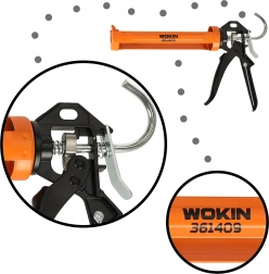 Pouzdani ručni pištolj za patrone WOKIN idealan je za montažu i brtvljenje prozora i vrata, fugiranje pregradnih zidova, radove na toplinskoj izolaciji zidova i krovova te ispunjavanje dilatacijskih zazora. Rotirajuće kućište od 360° olakšava pristup teško dostupnim mjestima i osigurava čisto, ravnomjerno vođenje trake.