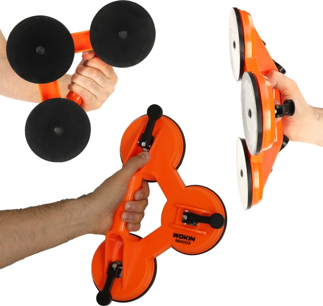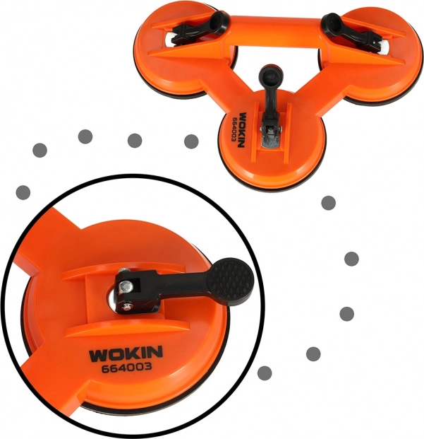 Profesionalna trodijelna vakuumska prijanjalica WOKIN s nosivošću 75 kg olakšava sigurno prenošenje i pozicioniranje stakla, glazure i pločica velikog formata. Tri prijanjalne točke promjera 11,5 cm osiguravaju stabilan prihvat bez ogrebotina na površini, a ergonomska ručka omogućuje precizno rukovanje i veći radni komfort.