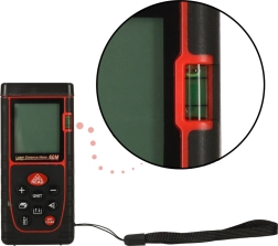 Daljinomjer nudi razne mjerne funkcije poput mjerenja duljine, površine, volumena te Pitagorin teorem i opremljen je ugrađenom libelom za jednostavno korištenje.