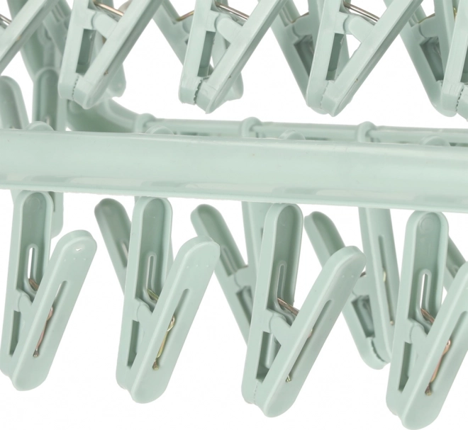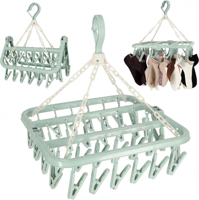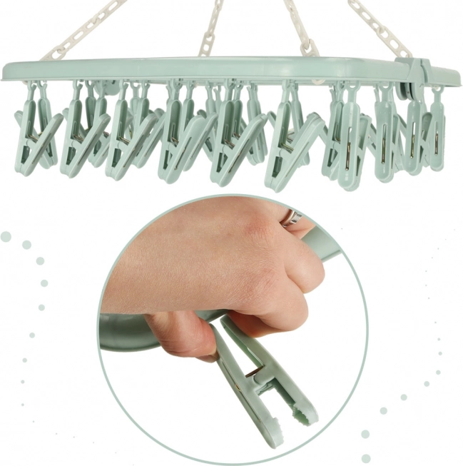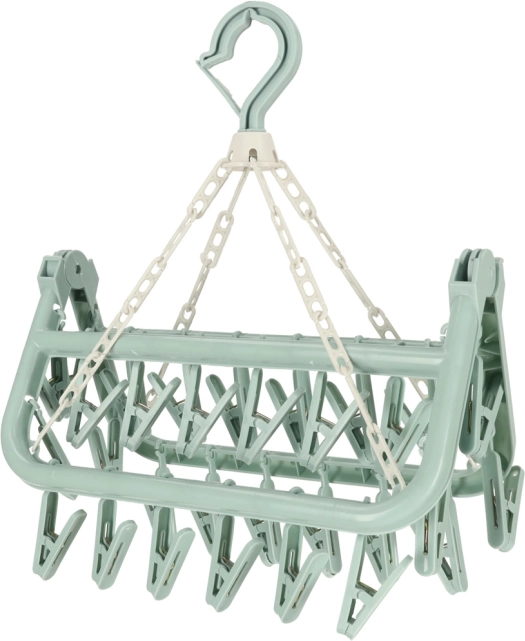 Kvačice su opremljene metalnim mehanizmom koji osigurava čvrstoću i sprječava klizanje rublja. Sklopiva konstrukcija olakšava njegovo skladištenje i omogućava ga ponijeti na putovanja ili kampiranje.