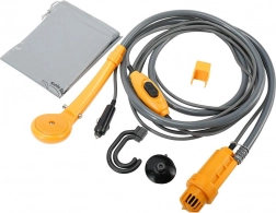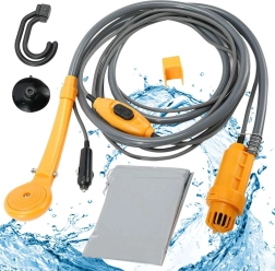 Ovaj prijenosni putni tuš napaja se iz standardne 12V auto utičnice, pa ga lako možete koristiti u automobilu, kamperu, na brodu ili na posjedu s pristupom bateriji. Zahvaljujući dugom napojnom kabelu i crijevu, rukovanje je praktično, a pranje brzo.