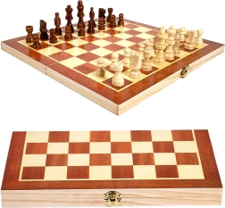 Ovaj univerzalni set nudi tri klasične društvene igre u jednoj: šah za strateško razmišljanje, dama s jednostavnim pravilima i trik-trak (backgammon) za dinamičnu i napetu igru. Sklopiva drvena šahovnica ujedno služi kao kutija za sigurno odlaganje figura i žetona.