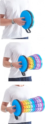 Rasklapanje je intuitivno: uhvatite obje ručke, izvucite i zakrenite ulijevo; za sklapanje zakrenite udesno i nježno pritisnite. Podesiva visina u 10 koraka (oko svakih 6 cm) omogućuje prilagodbu i djeci i odraslima. Praktični rameni remen olakšava prenošenje, a šareni dizajn privlači na prvi pogled.