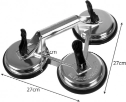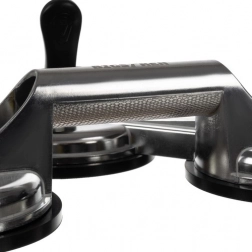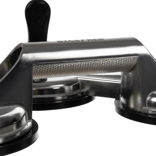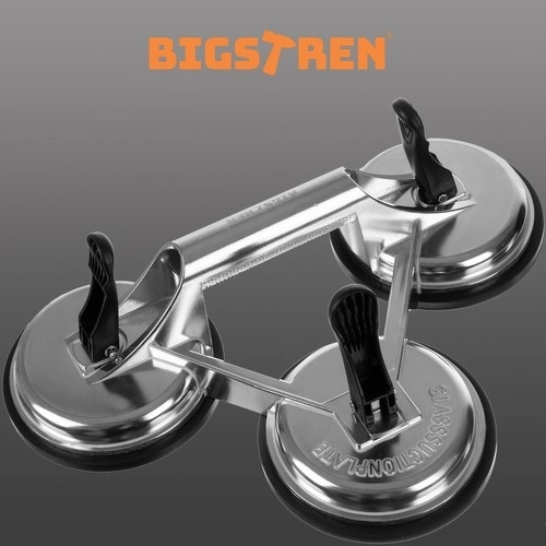 Ova robusna aluminijska trostruka prisavka BIGSTREN idealan je izbor za montere, staklare i kućne majstore. Tri velike gumene prisavke 120 mm s mehaničkim polugastim pritiskom pružaju snažno i stabilno prianjanje na glatkim i neporoznim površinama kao što su staklo, metal, glazura ili lakirano drvo.