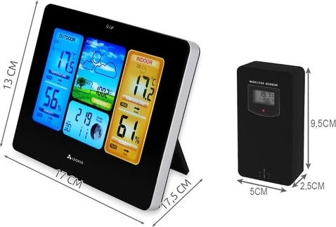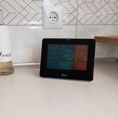 Moderna bežična meteorološka stanica IZOXIS s kolor i čitljivim LCD zaslonom mjeri temperaturu i vlagu u zatvorenom i na otvorenom, prikazuje tlak, tendenciju vremena i Mjesečeve mijene. Zahvaljujući vanjskom senzoru s dometom do 60 m dobit ćete pouzdan pregled uvjeta oko kuće. Ne nedostaju prognoza za 12–24 sata, alarm temperature, sat i datum te praktično pozadinsko osvjetljenje za lako čitanje danju i noću.