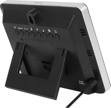Bežični vanjski senzor prenosi podatke do 60 metara, pa ga lako postavite na balkon, terasu ili u vrt. Stanica istodobno prikazuje unutarnje i vanjske vrijednosti, predviđa razvoj vremena za 12–24 sata i upozorava na pad ispod postavljene temperature. Pozadinsko osvjetljenje može biti stalno pri napajanju kabelom ili štedljivo na baterije s privremenim uključivanjem dodirom.