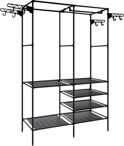 Šest polica, jedna šipka za odjeću i osam bočnih kuka primaju odjeću, cipele, kutije i dodatke. Otvoren dizajn osigurava brz pregled i lak pristup.