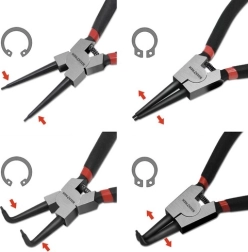 Dva ravna i dva zakrivljena alata pokrivaju većinu primjena s unutarnjim i vanjskim osiguravajućim prstenovima.