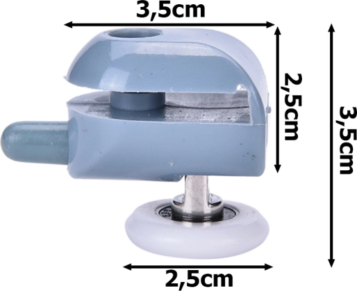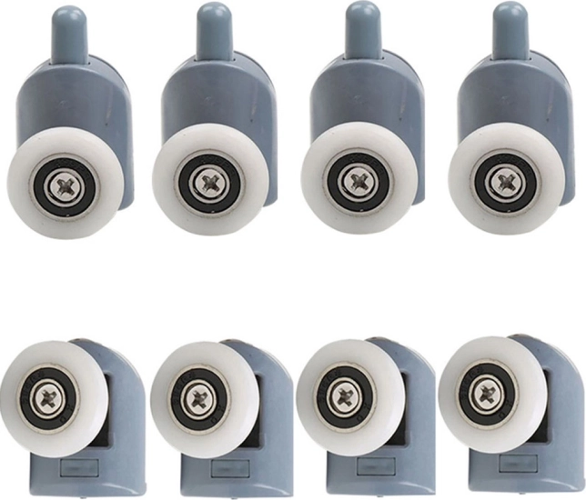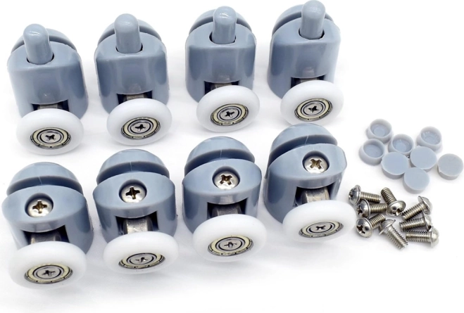 Kotačići su izrađeni od otporne plastike i čelika otpornih na koroziju. Sadrže kuglične ležajeve i osiguravaju glatko kretanje kliznih vrata. Ovaj set je idealan za različite veličine otvora tuš vrata.