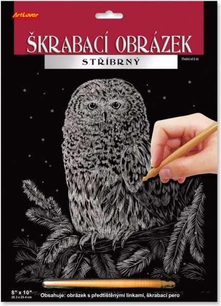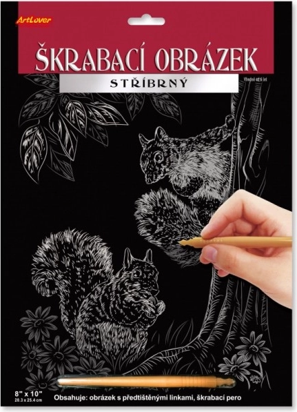 - 1× slika sa srebrnom podlogom i crnim slojem, 1× plastična olovka za grebanje