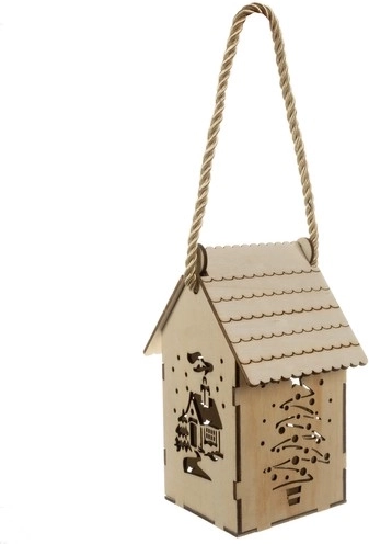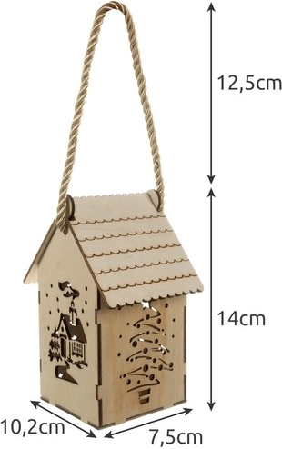 Cijela je konstrukcija od prirodnog drva, što svjetiljci daje topao i rustikalni izgled. Zahvaljujući čvrstom dekorativnom užetu svjetiljku je lako uhvatiti ili objesiti bilo gdje u domu kao božićni ukras.
