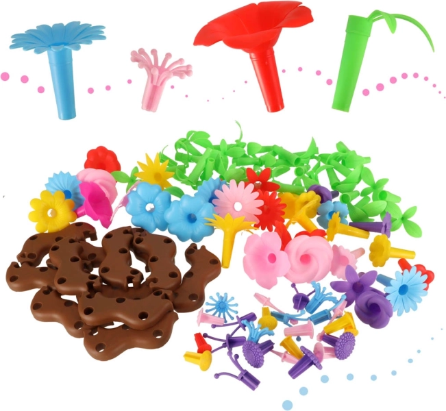 Ovaj šareni set sadrži 104 dijela koji omogućuju slobodnu kreativnost pri stvaranju prekrasnih cvjetnih kombinacija. Djeca će imati priliku zabaviti se i istovremeno razvijati kreativnost, fine motoričke vještine i koordinaciju ruka-oko.