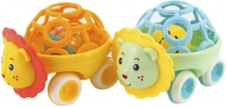 Preslatka plastična zvečka u obliku autića sa životinjicom idealna je prva igračka za bebe od 3 mjeseca. Lako se hvata, lagana je i zahvaljujući slobodnom hodu nježno se kotrlja. Potiče razvoj fine motorike, osjetilno opažanje i prvu koordinaciju oko–ruka. Dostupna u dvije varijante boja.