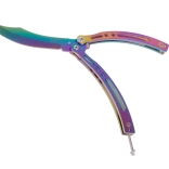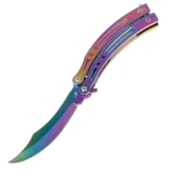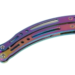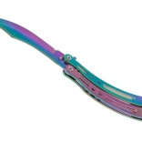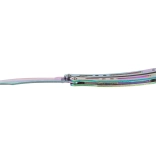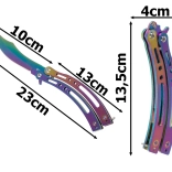 Ovaj prekrasan leptir nož s iriscentnom površinom savršena je kombinacija estetike i funkcionalnosti. Njegova sigurna sklopiva oštrica i izdržljiva konstrukcija čine ga savršenim izborom za svakodnevnu upotrebu ili kolekcionarski komad.