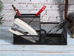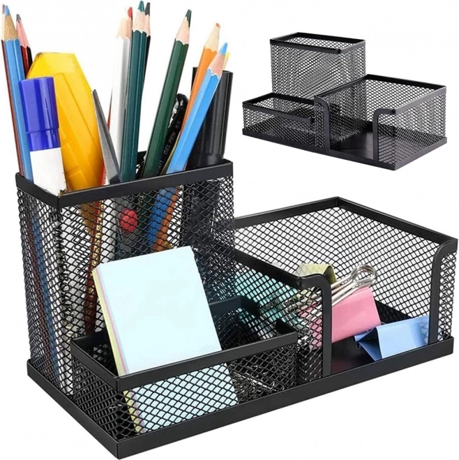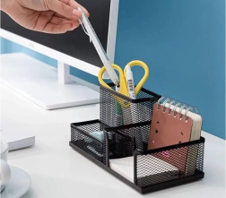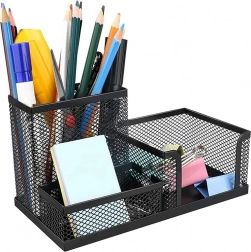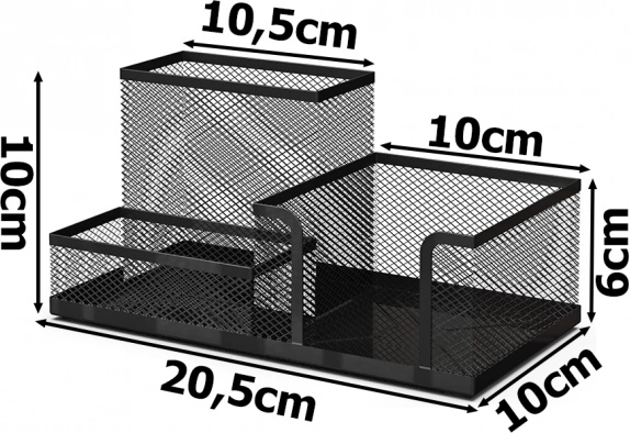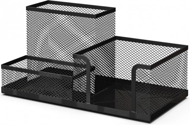 Otkrijte prednosti organizacije s našim crnim mrežastim stolnim organizatorom. Njegova lagana metalna konstrukcija je dizajnirana tako da vaš radni prostor ostane čist i učinkovit. Tri prostrana pretinca pomažu u organizaciji svih vrsta uredskih potrepština, što vam omogućuje da se potpuno usredotočite na rad i povećate produktivnost.