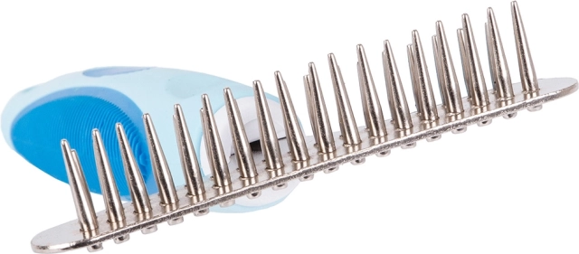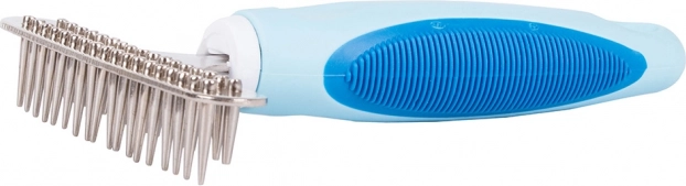 Trimer za kućne ljubimce je neusporedivo učinkovitiji od uobičajenih četki ili češljeva. Njegovi izdržljivi zupci od nehrđajućeg čelika dizajnirani su za učinkovito uklanjanje odumrle poddlake bez šišanja dlake. Drška, presvučena gumenim materijalom, pruža udoban hvat i sprječava klizanje iz ruke.