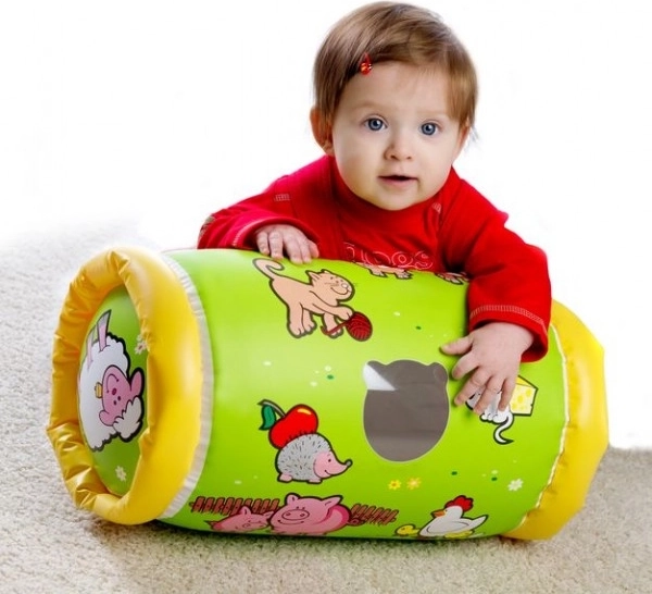 Napuhujući valjak Moje prve životinjice izvrstan je pomoćnik za poticanje motoričkog razvoja. Pruža potporu pri puzanju, jača trup i pomaže u izgradnji ravnoteže. Zahvaljujući veselim motivima i zvonećim zvončićima privlači djecu pokretu i igri.