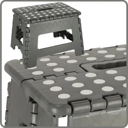 Ova kompaktna sklopiva stolica odličan je pomoćnik svugdje gdje trebate brzo dobiti stabilan oslonac ili nisko sjedište. Lagana i izdržljiva plastična konstrukcija lako se sklapa i rasklapa, a zahvaljujući protukliznoj gornjoj površini i čvrstoj bazi osigurava sigurno korištenje.