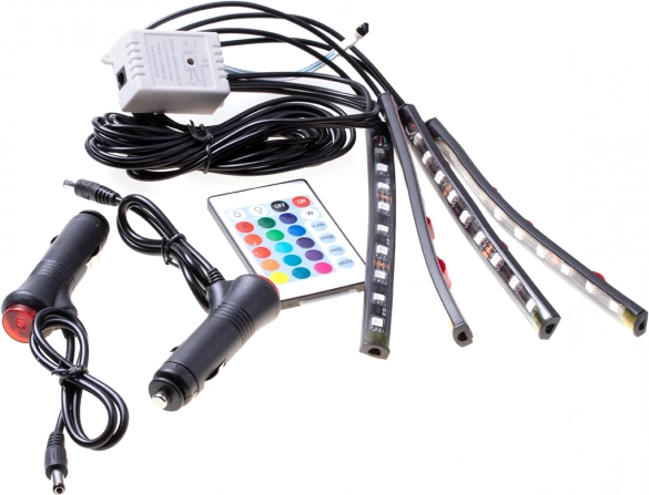 LED trake omogućuju stvaranje originalnog osvjetljenja interijera svakog automobila. Zahvaljujući LED osvjetljenju možete kreirati jedinstven interijer u svom vozilu. Trake vam pomažu brzo i jednostavno napraviti jednostavnu, ali važnu promjenu u vašem vozilu. Trake se mogu zalijepiti iznad pragova, ispod sjedala, ispod vrata, u kokpitu, u prtljažniku itd. LED trake se pričvršćuju pomoću obostrane 3M ljepljive trake, stoga je ugradnja vrlo jednostavna. Trake su vodootporne, tako da ne morate brinuti o vlazi. Podesivom jačinom svjetla sami odlučujete koliki dio interijera želite osvijetliti. Napajanje izravno iz upaljača automobila – 12 V. Mogu se brzo i lako isključiti zahvaljujući posebnoj osvijetljenoj tipki ON/OFF na 12V utikaču upaljača.