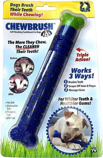 - Opremljeno utorima i prorezima koji pomažu ukloniti nakupljene ostatke hrane, zubni plak i kamenac. Također ima pretinac za pseću pastu za zube koja se tijekom žvakanja polako oslobađa.