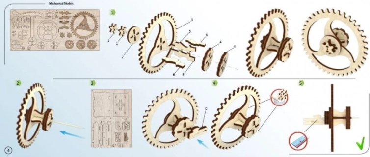 Precizno izrezani drveni dijelovi, jasan slikovni priručnik i preporučeno voskanje osovina osiguravaju glatko okretanje i besprijekoran rad.
