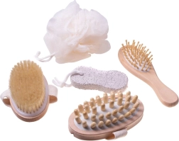 Praktična kombinacija četki, plovućca i spužve pomaže ukloniti mrtve stanice, omekšati zadebljalu kožu i opustiti napetost mišića. Set je prikladan za svakodnevnu upotrebu i potiče glatkiju, zdravije izgledajuću kožu.
