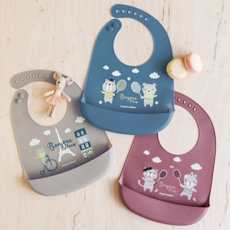 Proširenje moderne kolekcije Bonjour Paris je stiglo! Nadopunite dječju opremu ovim praktičnim vodootpornim podbratkom koji štiti djetetovu odjeću od prljanja. Ima praktičan džep koji hvata padajuće komadiće hrane. Podesivo kopčanje omogućuje lako prilagođavanje veličine trenutnoj potrebi. Podbradak je savršen za kućnu upotrebu i za putovanja. Izrađen je od 100% laganog i sigurnog silikona. Podbradak je dostupan u 3 kolor varijante u skladu s najnovijim trendovima. Praktičan, vodootporan – štiti odjeću vašeg djeteta od zaprljanja. Podesivo kopčanje – omogućuje lako prilagođavanje veličine podbratka trenutnoj potrebi. Praktičan džep – hvata padajuće dijelove hrane. Moderna kolor izvedba – inspirirana najnovijim trendovima. Lagani – izrađen od 100% sigurnog silikona. Jednostavno održavanje – podbradak se može prati u perilici posuđa. Savršen za putovanja! Upute za uporabu. Održavajte u čistoći. Perite blagim deterdžentom u toploj vodi, temeljito isperite. Prelijte kipućom vodom. Može se prati u perilici posuđa. Pažnja! Važno za sigurnost i zdravlje vašeg djeteta! Prije svake uporabe provjerite kvalitetu proizvoda. Pri prvim znakovima trošenja ili oštećenja prestanite koristiti proizvod – zamijenite ga novim. Proizvod nije igračka. Čuvajte izvan dohvata djeteta. Otvorite energičnim trganjem kartona, ne koristite škare. Upozorenje! Plastičnu ambalažu (pakiranje) držite izvan dohvata djeteta kako biste spriječili mogućnost gušenja. Silikonski podbradak odgovara zahtjevima: Direktiva Europskog parlamenta i Vijeća 2001/95/EC o općoj sigurnosti proizvoda.