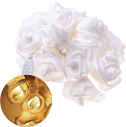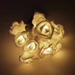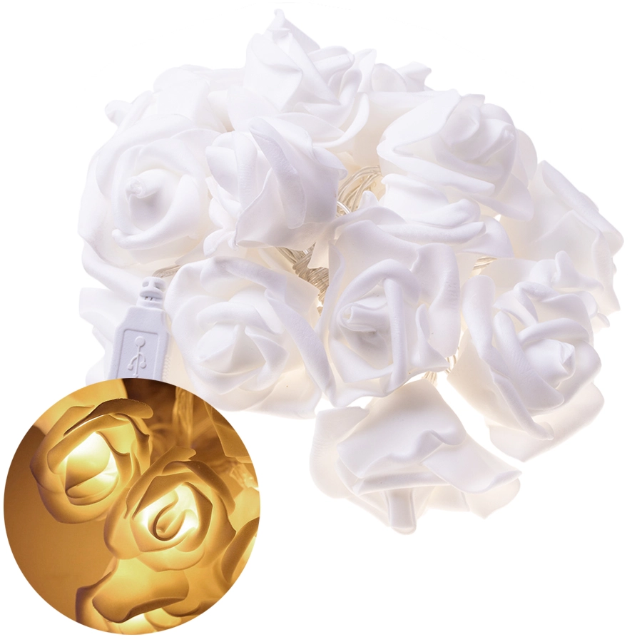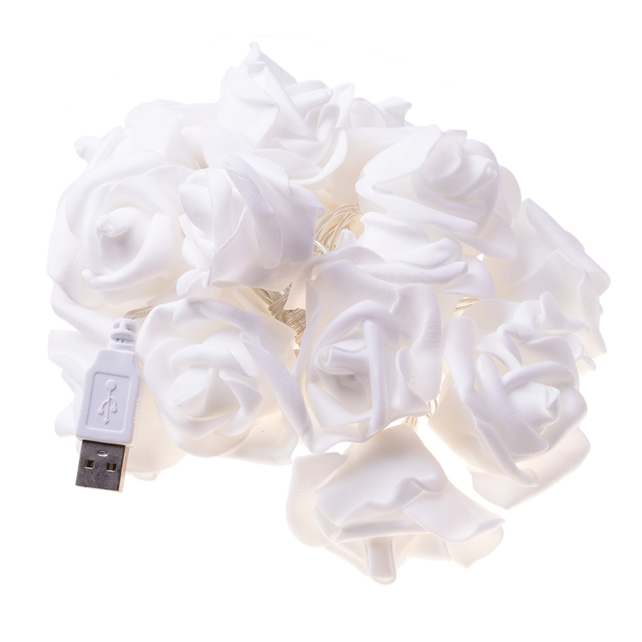 LED girlanda s motivom ruža čarobna je dekoracija za svakodnevne i svečane trenutke. Mekano toplo svjetlo prolazi kroz cvjetne difuzore i stvara ugodno, umirujuće okruženje idealno za odmor ili večernje čitanje. Zahvaljujući maloj težini lako je objesite na čavao, kukicu ili omotate oko kreveta, police ili ogledala.