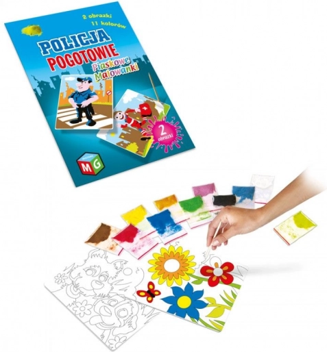 Zabavna, šarena pijeskaima opuštajući učinak i može zainteresirati i najživahniju djecu. Slikanje pijeskom je igra koja se sastoji u otkrivanju pojedinih elemenata slike kako bi se otkrila površina odabranog fragmenta. Otkriveni dijelovi posipaju se pijeskom u boji prema predlošku, čime nastaje lijepa ilustracija.