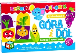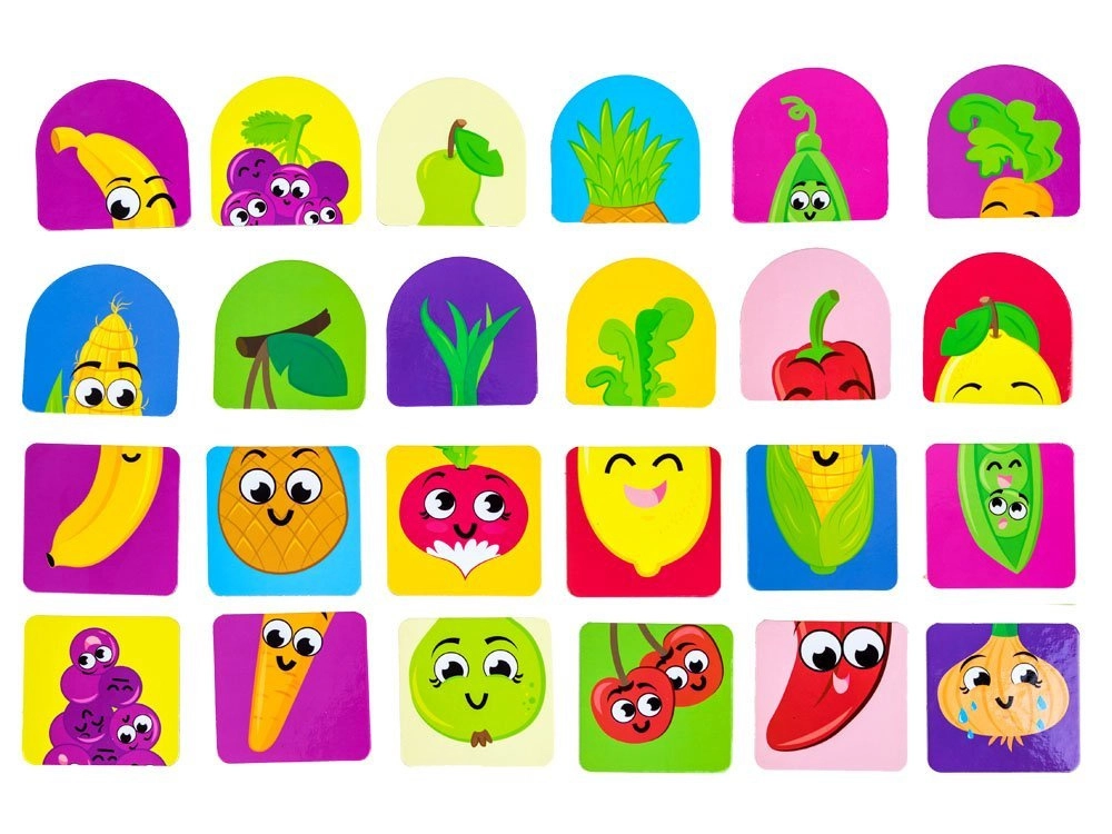 Zabavna edukativna igra za najmlađe u kojoj djeca spajaju dio „gore“ s dijelom „dolje“. Zahvaljujući jednostavnim ilustracijama s duhovitim motivima voća i povrća razvijaju logičko razmišljanje, uparivanje u parove i moć zapažanja. Veliki dijelovi od čvrstog kartona lako se drže i sigurni su za male ruke.