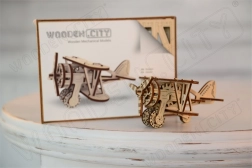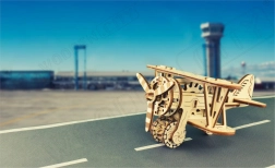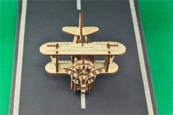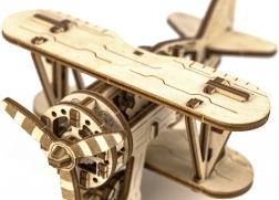 Komplet je izrađen od kvalitetne brezove šperploče i sastavlja se bez potrebe za ljepilom ili alatima. Dimenzije sastavljenog modela su približno 16,1 x 14 x 8,8 cm. Bit će izvrsni poklon za ljubitelje aviona i osigurat će sate zabave i učenja o mehaničkim prijenosima i zupčanicima.