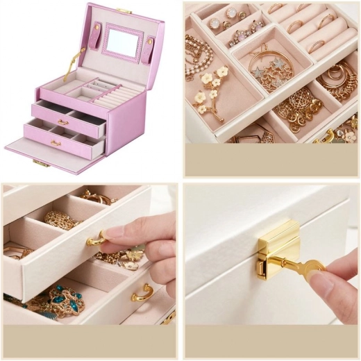 Među osobnim stvarima svake žene važnu ulogu imaju nakit. Višeslojna kutija za nakit je nezamjenjiv i pouzdan proizvod za pohranu vaših dragocjenosti. Odvojeni pretinci i ladice pružaju savršeno mjesto za naušnice, narukvice, satove, lančiće, naočale i druge dragocjenosti. Kutija za nakit uklanja problem zapetljanih lančića, oštećenja i ogrebotina. Zlatni, srebrni i modni nakit možete odvojeno rasporediti. Mekana podstava štiti vaše dragocjene komade od ogrebotina. Kutija za nakit ima veliko odvojivo ogledalo, koje je prikladno i za isprobavanje nakita i za šminkanje.