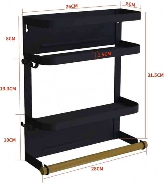 Praktičan dvoslojni magnetski organizator za održavanje reda u manjoj kuhinji. Idealan za pohranu začina i kuhinjskog pribora uz trenutni pristup, a pritom pruža dodatni prostor. Ovaj organizator namijenjen je za montažu na hladnjak zahvaljujući snažnim magnetima koji osiguravaju čvrsto držanje čak i pri velikom opterećenju.