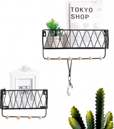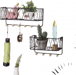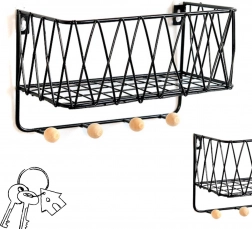 Polica dimenzija 25,5 × 16,5 × 12 cm uklapa se i u manje prostore. Nudi mjesto za sitnice na gornjoj polici te pregledno vješanje ključeva ili dodataka na donjim kukama.