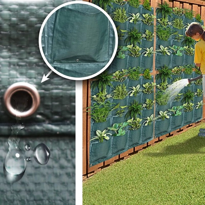 Zidna sadilna vreća omogućuje sadnju u svaki džep. Unutrašnjost džepa lako se puni zemljom i u njega se stavlja biljka. Namijenjena je za ukrasno bilje, jagode ili sve vrste začinskog bilja. S visećom vrećom stvorit ćete prekrasnu dekoraciju s živim biljkama. Možete je postaviti bilo gdje: u dvorištu, na ogradu, na terasu ili balkon. Vješanjem vreće na zid uštedjet ćete mnogo prostora. Cijela vreća izrađena je od izdržljivog materijala otpornog na vremenske uvjete i vlagu.