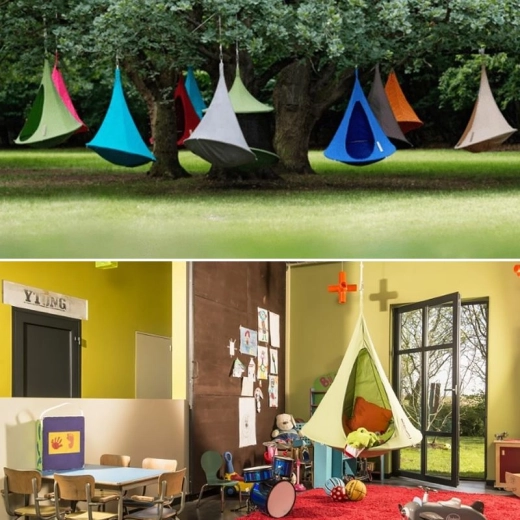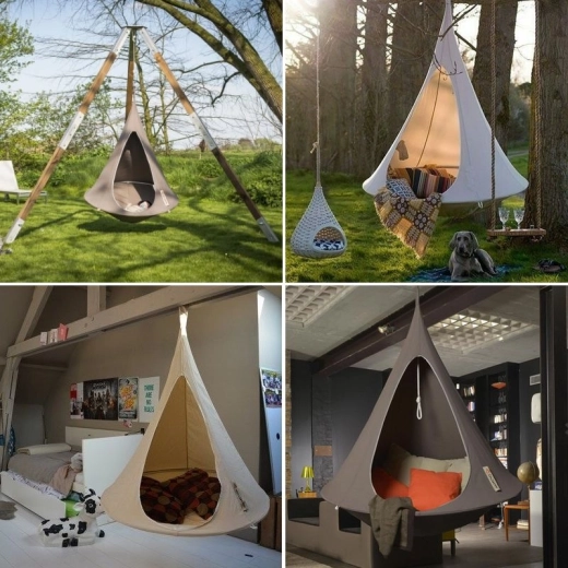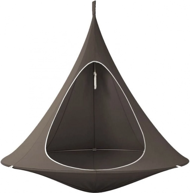 Viseći šator je nezamjenjiv dodatak za vrt i dječju sobu. Omogućuje vam opuštanje u vrućim danima u vrtu, a zimi je idealan za najmlađe kod kuće. Viseći kokon izrađen je od vodoodbojnog materijala, otpornog na plijesan i UV zračenje 50. Viseći šator izgleda vrlo impresivno, svojim oblikom podsjeća na ptičje gnijezdo ili NLO.