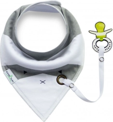 Ovaj slatki podbradak idealan je za svakodnevno nošenje – štiti vrat od hladnoće i istodobno hvata sline tijekom razdoblja nicanja zubića. Zahvaljujući odvojivom klipu za dudu dudu ćete uvijek imati pri ruci te ga možete jednostavno zamijeniti vlastitim.