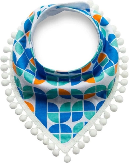 Slatki dječji šal s pomponima izvrstan je dodatak za vrat koji će dobro poslužiti i kao marama‑slinček za vrijeme nicanja zubića. Udobna marama zatvara se drukerima koji ne štipaju dijete, a rub je također podesiv.