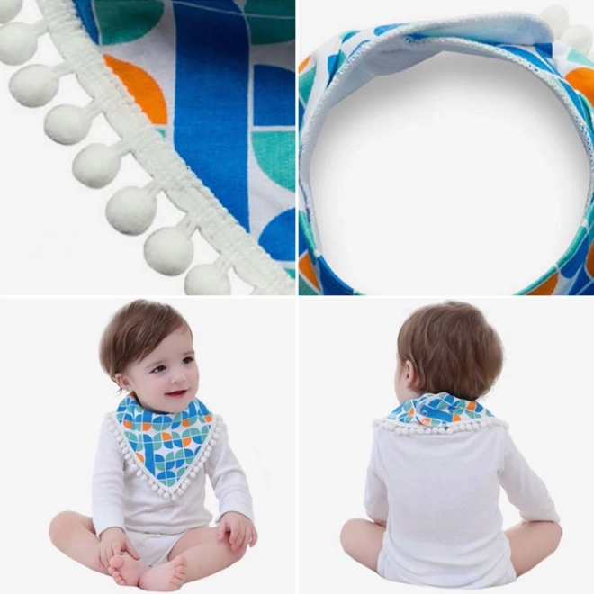 Slatki dječji šal s pomponima odličan je dodatak za vrat, a može dobro poslužiti i kao podbradak tijekom nicanja zubića. Udobno kopčanje s drukerima ne steže dijete, a dostupan je i podesivi rub.