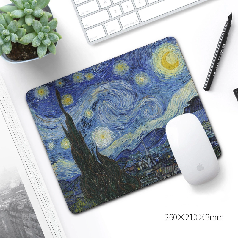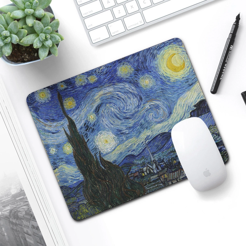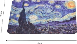 Uljepšajte svoj stol ikonama umjetnosti i istovremeno dobijte vrhunsku funkcionalnost. Tanak profil i glatka tekstilna površina pružaju precizno vođenje miša, dok gumena protuklizna baza drži podlogu čvrsto na mjestu čak i pri brzim pokretima. Izdržljiv, živopisan tisak motiva Zvjezdana noć osvježit će svako radno mjesto ili gaming kutak.