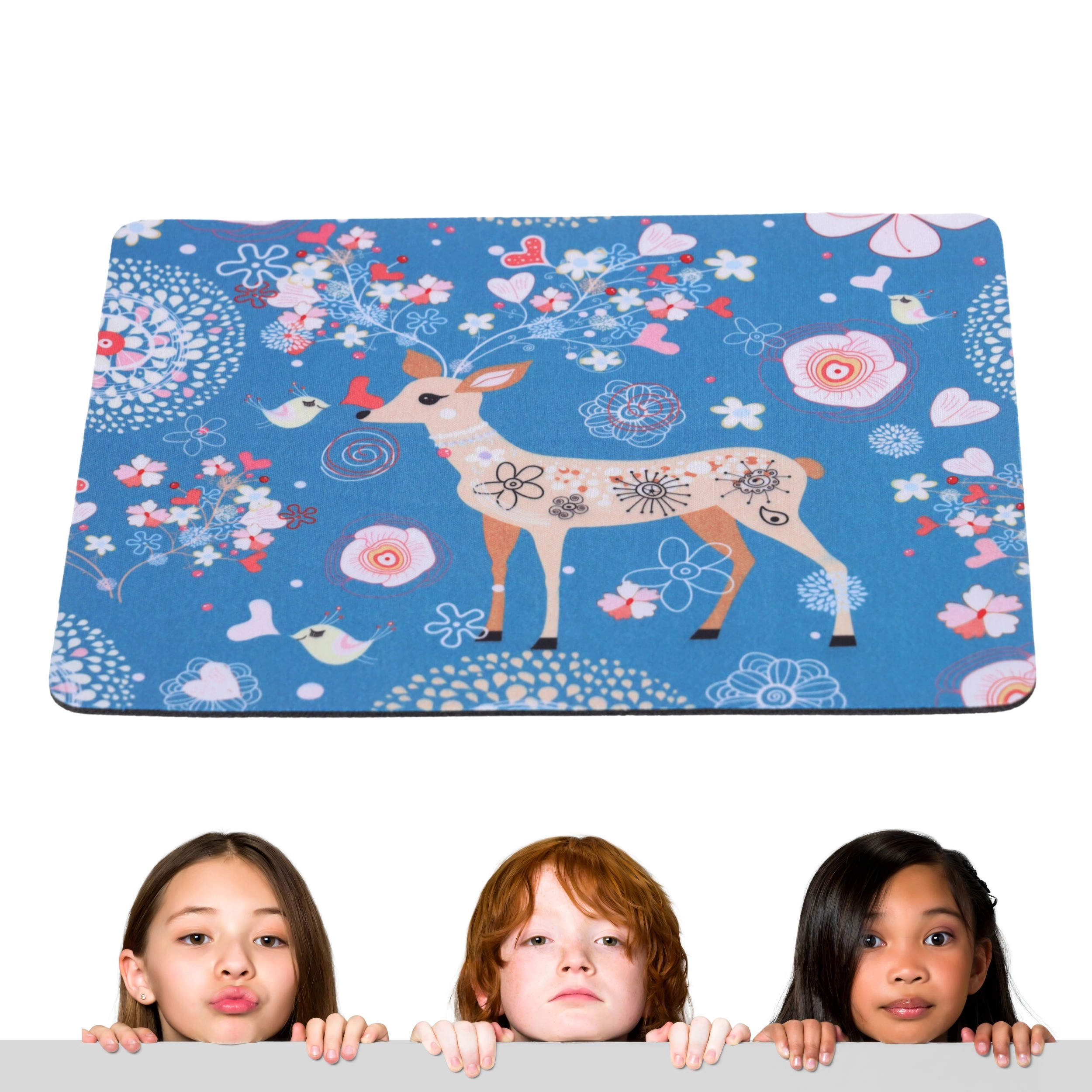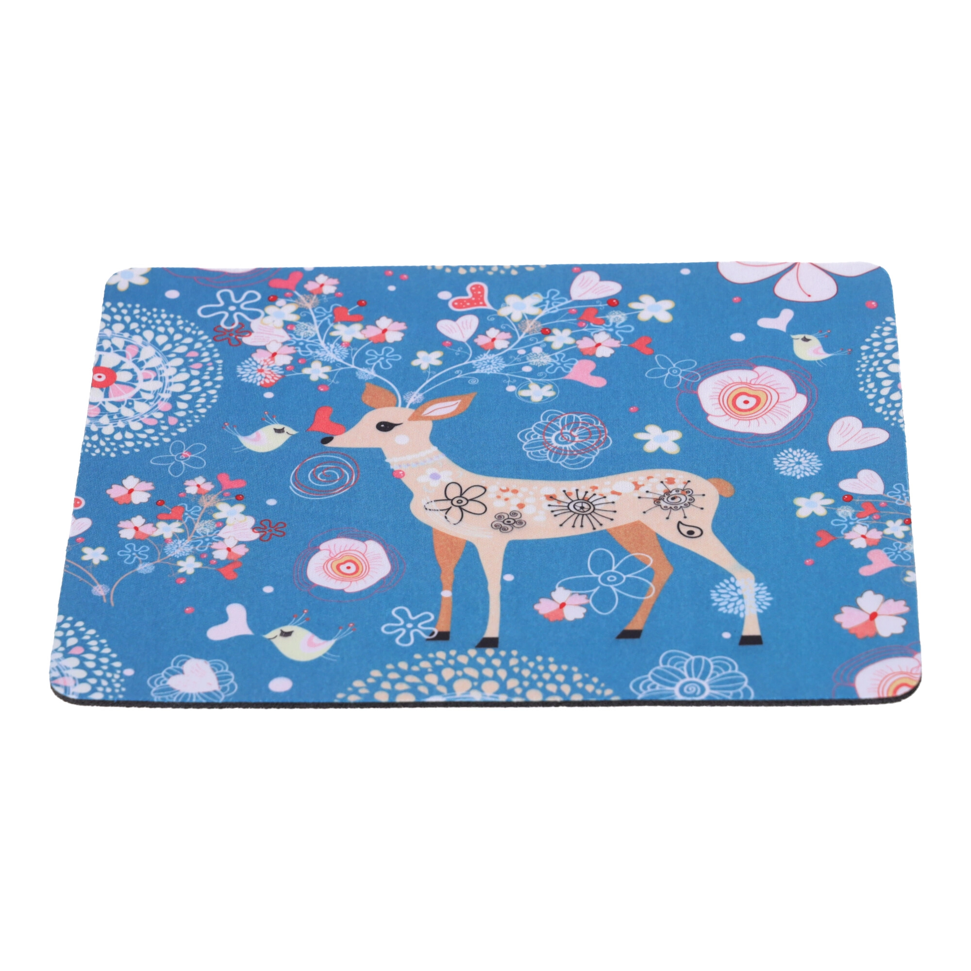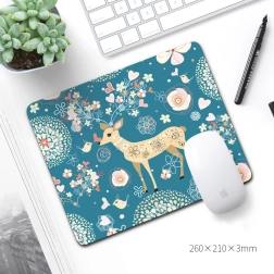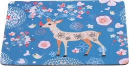 Ova dekorativna podloga za miš s nježnom plavom pozadinom i razigranim motivom srne, ptičica i cvijeća uljepšat će svaki radni stol. Tekstilna površina osigurava glatko kretanje miša i visoku preciznost kursora, dok gumena donja strana drži podlogu čvrsto na mjestu.