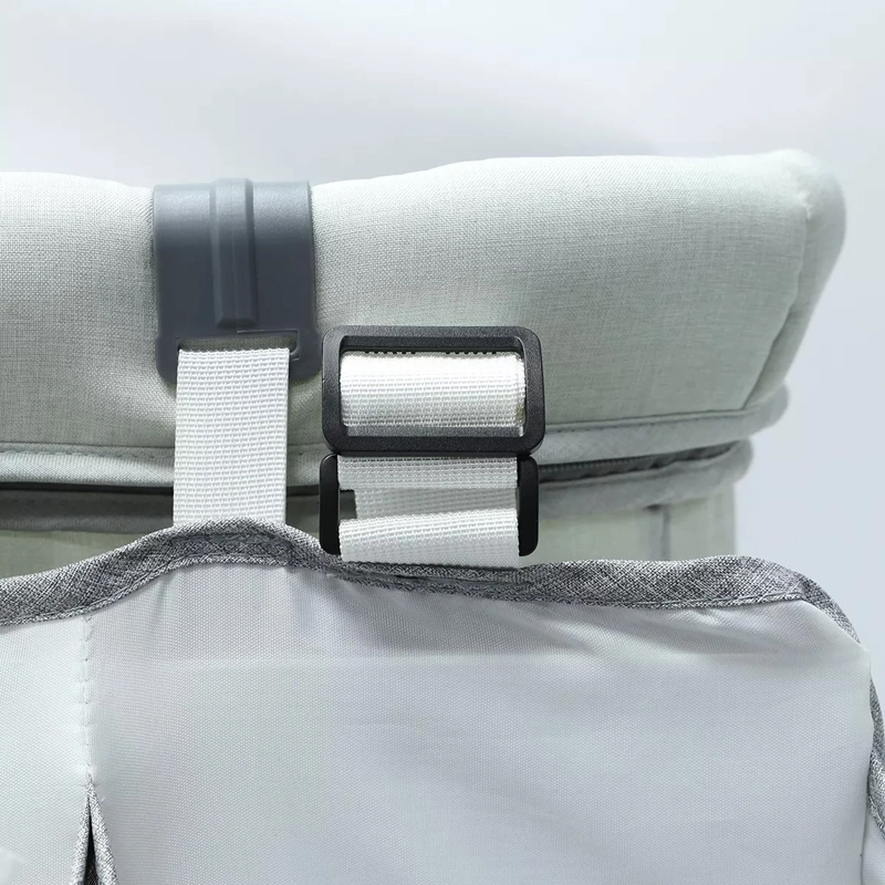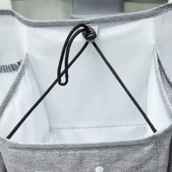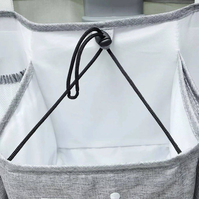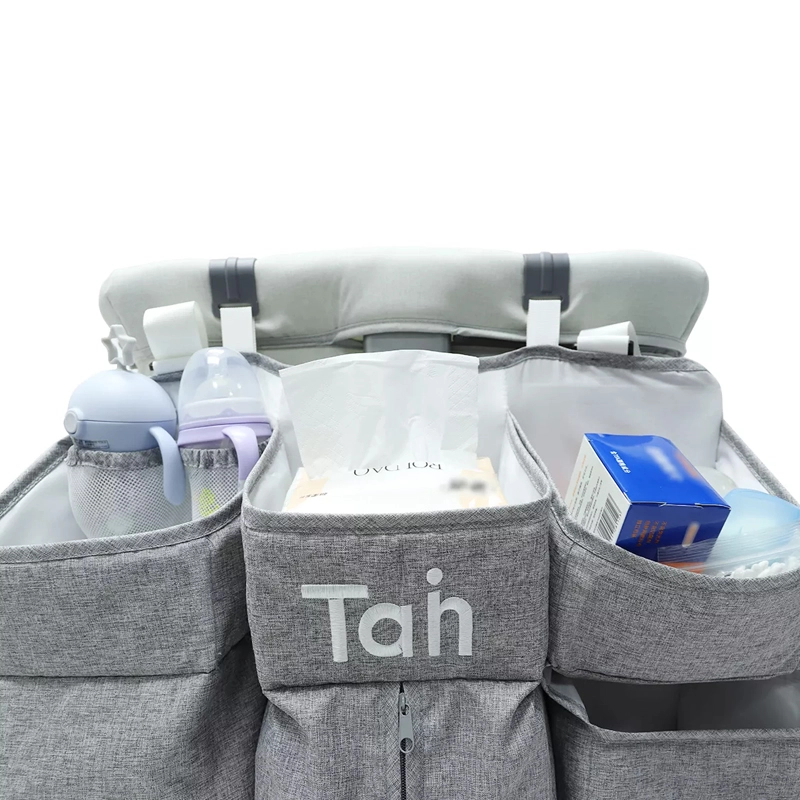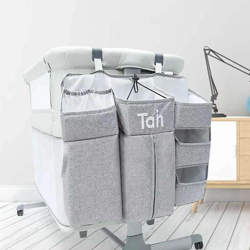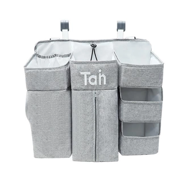 Praktičan sivi organizator za dječji krevetić drži sve potrepštine za bebu pregledno pri ruci. Nudi više džepova, police i zatvorivi džep na patentni zatvarač za pelene, mrežaste džepove za sitnice te univerzalno pričvršćivanje na krevetić, previjalište, vrata ili u ormar.
