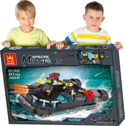 Ovaj set policijskog motornog čamca donosi djeci zabavu i učenje u jednom. Nakon slaganja mogu preuzeti ulogu čuvara reda i patrolirati vodenom površinom. Zahvaljujući dvjema priloženim figuricama, igra je još raznovrsnija, a priče realističnije.