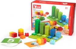 Ovaj set spaja zabavu i učenje: uz pomoć brojčanih kocaka i aktivnosti na karticama djeca uče brojati, uspoređivati količine i slagati jednostavne jednadžbe. Šareni dijelovi motiviraju na samostalnu igru te prirodno potiču maštu i prostornu percepciju.