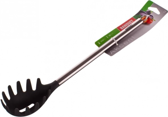 Accent žlica za špagete 32 cm, materijal – najlon, ručka od nehrđajućeg čelika 403, praktična omčica za mogućnost vješanja. Posuđe se lako drži, može se prati u perilici posuđa.